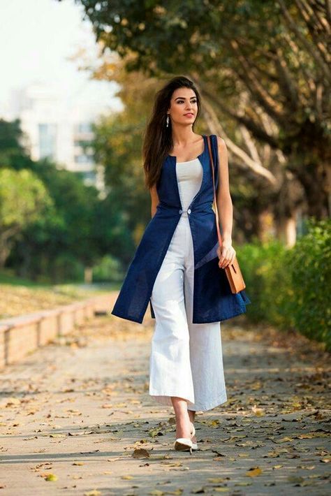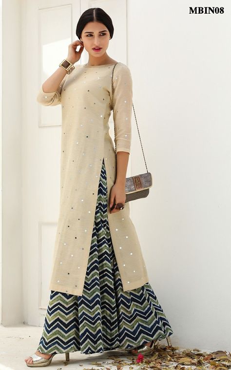 Wide leg pants/Palazzo in plain or printed form can be paired with printed long kurta or waist length tunic.